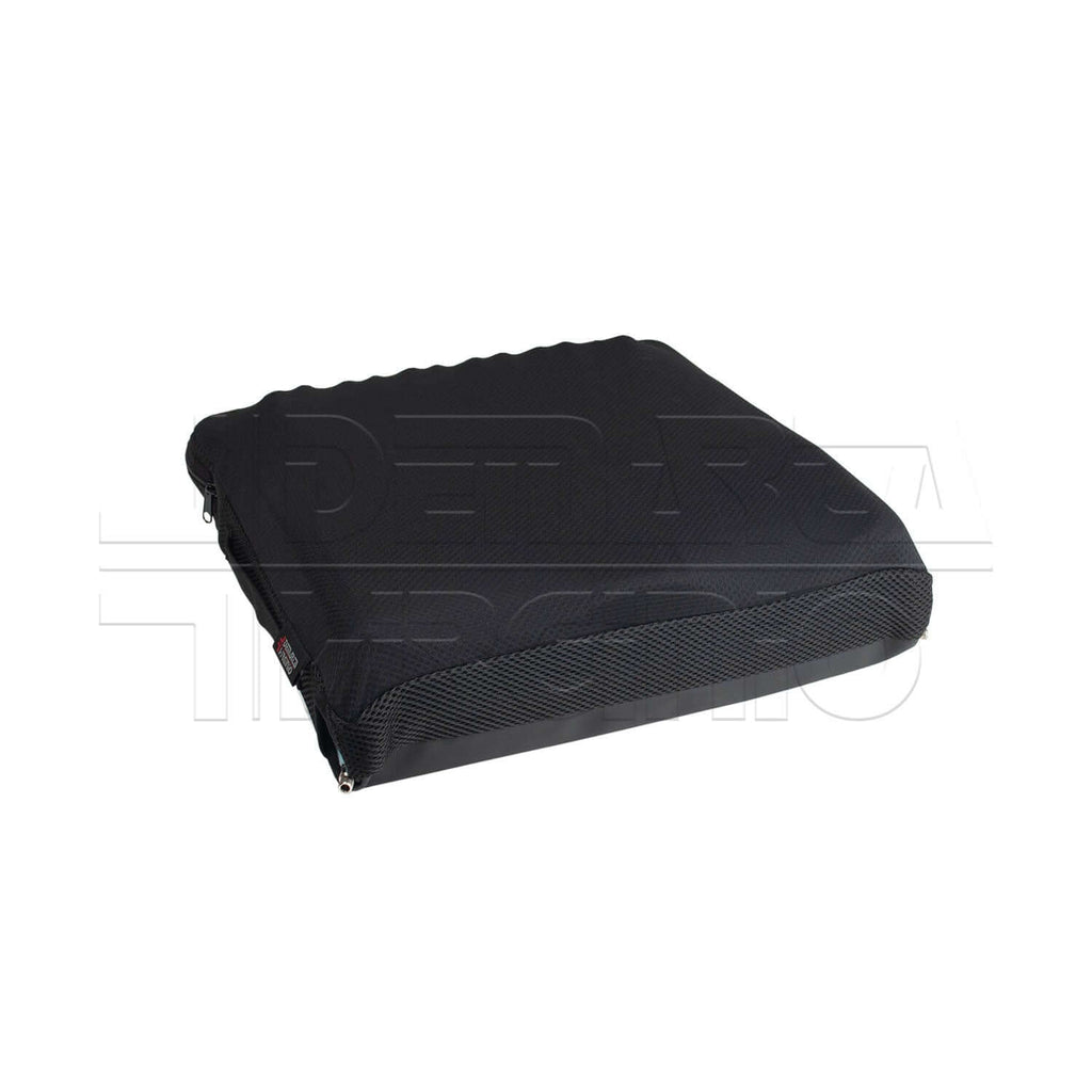 La fodera esterna è caratterizzata da una superficie d'appoggio in Jersey, poliestere traspirante e bielastico; una struttura a nido d'ape sui fianchi, una base antiscivolo, maniglia per il trasporto, cerniera su 3 lati e laccetti per l'ancoraggio alla carrozzina o alla sedia.