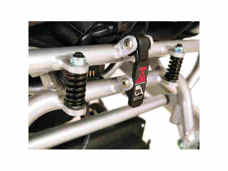 La sedia è dotata di molteplici regolazioni per un maggiore comfort: è pieghevole in lunghezza, la piattaforma poggiapiedi è pieghevole e rimovibile e i braccioli sono pieghevoli. La particolare curvatura del telaio e l'ergonomico ripiegamento a 120° dei poggiapiedi consentono di far rientrare la pedana all'altezza della seduta, liberando la zona di accesso e facilitando al massimo l'avvicinamento alla sedia per salire e scendere.