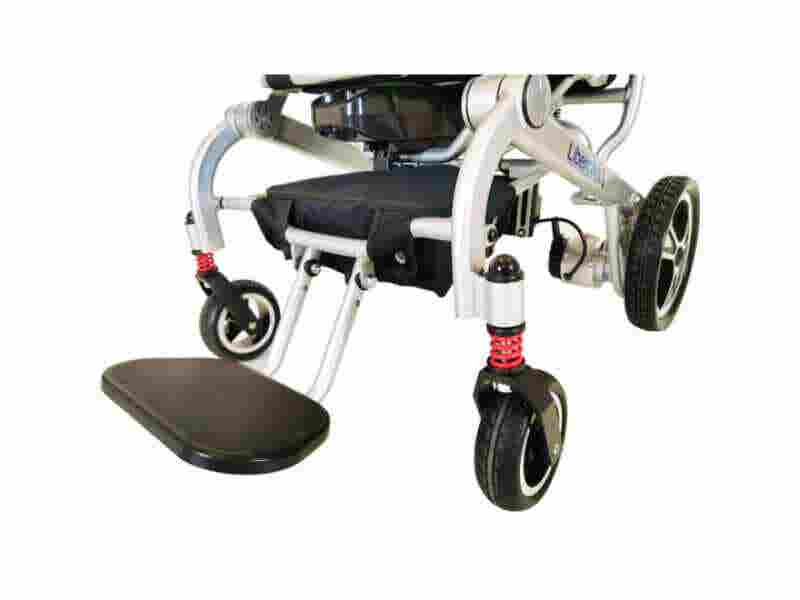 La lunghezza normale della sedia Libercar Gala è di soli 95 cm. Ripiegando la pedana poggiapiedi, la lunghezza si riduce a soli 85 cm. La sedia si ripiega facilmente senza dover rimuovere le batterie, lasciando una lunghezza di soli 34 cm.
