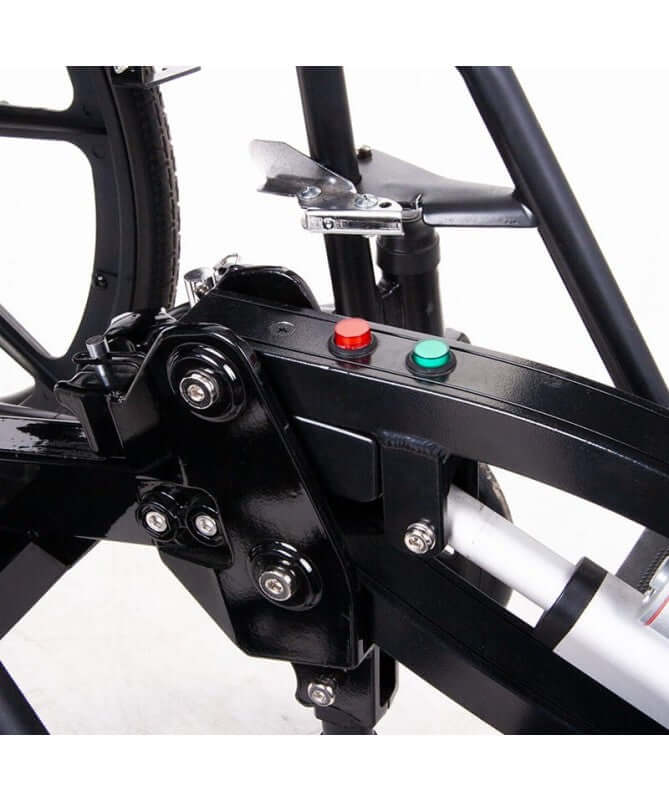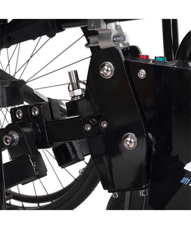 It has a design and dimensions that make it easy to carry. It is equipped with a front light, horn and a digital display that indicates the distance traveled and the speed. The new Zoe handbike has an improved anchorage that allows the Zoe to be attached to manual wheelchairs without difficulty. It is adjustable in height.