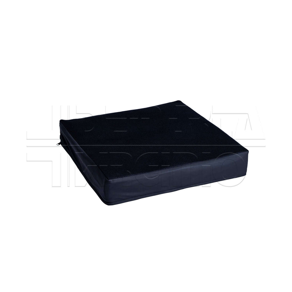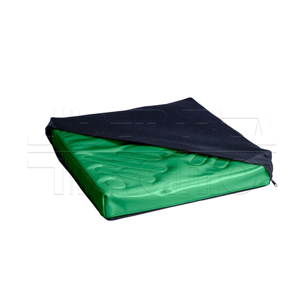 Il cuscino ADAPTO è realizzato con una base in schiuma multistrato a densità differenziate. La parte inferiore di irrigidimento a celle chiuse di densità 37 Kg/m3, favorisce il massimo supporto e comfort per tutti quei soggetti che ne fanno utilizzo per lunghi periodi di tempo, garantendo uno scarico simmetrico delle pressioni su qualsiasi superficie di lavoro. La parte superiore della base è composta da uno strato spesso e sagomato di schiuma morbida di densità 30 Kg/m3, che riduce l'insorgenza di borsiti e infiammazioni sulla zona ischiatica, sacrale e trocanterica. L'imbottitura in fluido è contenuta da una sacca in poliuretano saldata ad alta frequenza che si adatta anatomicamente alla base sagomata. L'imbottitura è l'elemento fondamentale del sistema antidecubito, in quanto avvolge le prominenze ossee, massimizzando la distribuzione delle pressioni e minimizzando gli attriti. Gli stabilizzatori laterali presenti sulla base anatomica aiutano a prevenire il trasferimento del fluido, delimitandolo alla sola zona di interesse e diminuendo la possibilità di affondamento dell'aerea posteriore del bacino e antero-trocanterica. Grazie all'effetto Self-Flow, il cuscino sfrutta la pressione esercitata dal peso corporeo sull'imbottitura fluida per accentuare il sistema divaricante, evitando scivolamenti frontali e garantendo maggiore stabilità posturale. L'avvallamento posteriore allevia la pressione sul coccige e sulla parte inferiore della colonna vertebrale. L'involucro del cuscino in 100% poliuretano ne garantisce l'impermeabilità e una lunga durata nel tempo.Portata terapeutica 150 Kg.
