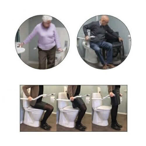 - Impugnatura verticale: comoda presa per l'alzata, la seduta e l'avvicinamento ai sanitari (Cod. MRIB EIMPVE)