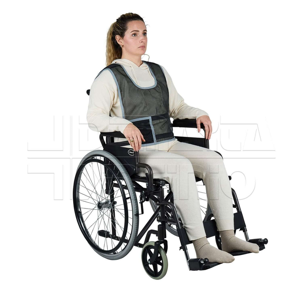 Il GILET DI FISSAGGIO è un comodo supporto per sedia a rotelle, fornisce un'adeguata stabilità del tronco e previene lo spostamento laterale del paziente.