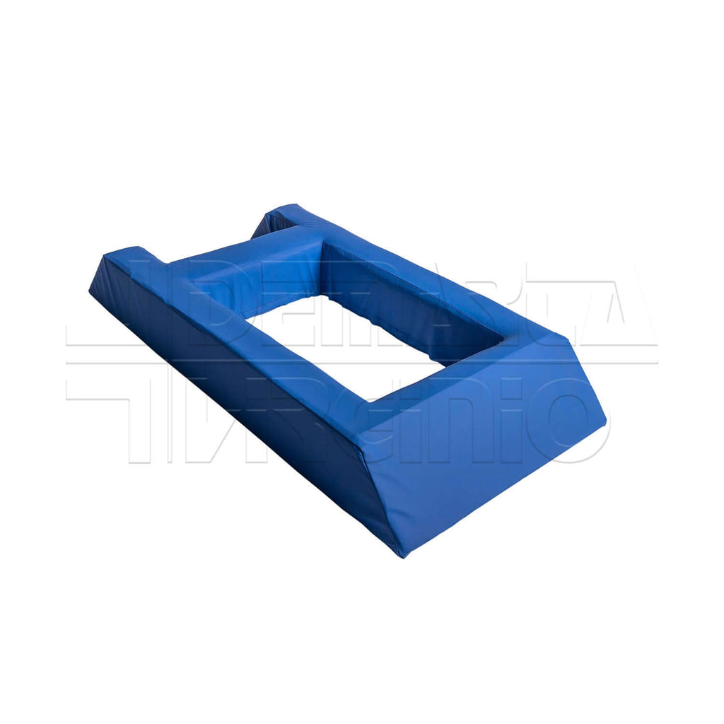 Il POSIZIONATORE TORACICO ha una base d'appoggio in espanso a cellule chiuse con una superficie d'appoggio in espanso viscoelastico. Il rivestimento esterno ha una fodera in poliuretano impermeabile e traspirante con una base antiscivolo e cerniera su 3 lati. Il foro rettangolare all'interno del posizionatore è di dimensioni 46 x 30 cm. Il posizionatore è dotato di un ulteriore riduttore al suo interno con dimensioni 43 x 27.5 cm, ed il foro al suo interno è di 30 x 14.5 cm.