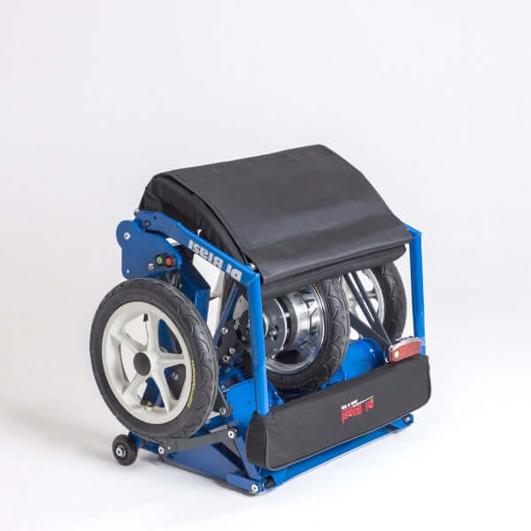 Piegare R30 per il trasporto è facilissimo. Si chiude e si apre completamente elettricamente tramite un pulsante. Una volta chiuso, si trasporta comodamente come un trolley grazie alla maniglia e alle ruote. Il peso per il trasporto, senza batteria, è di 23,6 kg. Disponibile in 3 colori: Rosso, Nero, Blu. R30 è trasportabile in aereo.
