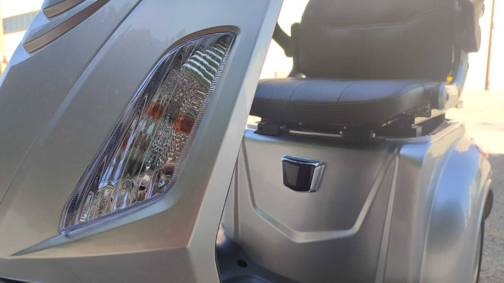 L'ampia sella ergonomica con braccioli alzabili offre un accesso facilitato, mentre il bauletto posteriore con chiave e il vano sottosella con serratura garantiscono spazio per riporre oggetti in sicurezza. Il tachimetro digitale fornisce informazioni essenziali come livello batteria, km percorsi, velocità e segnali luminosi attivi.