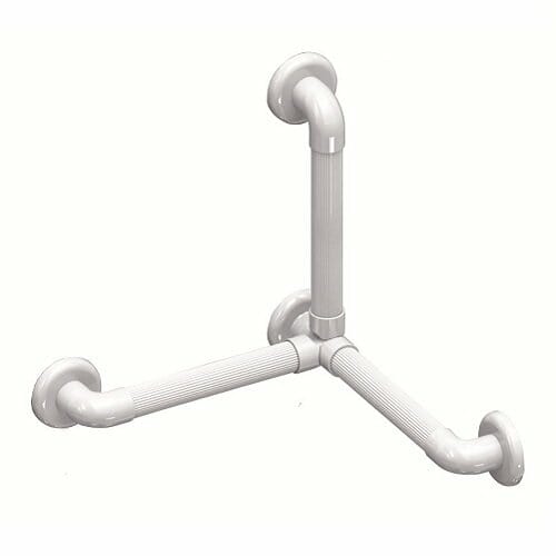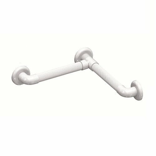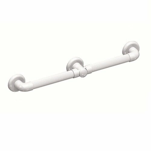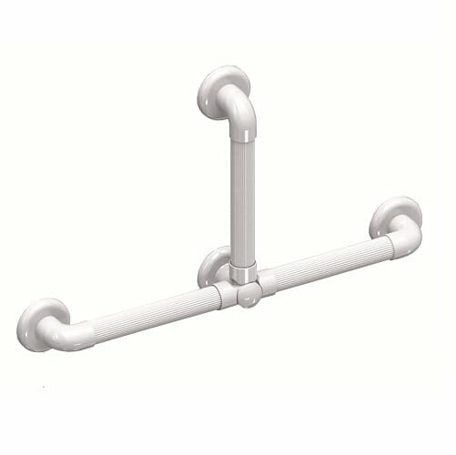 Lo Snodo Multimagic per maniglioni fissi componibili consente di realizzare differenti versioni di maniglione fisso a parete, assemblando due impugnature in senso lineare o angolato.
