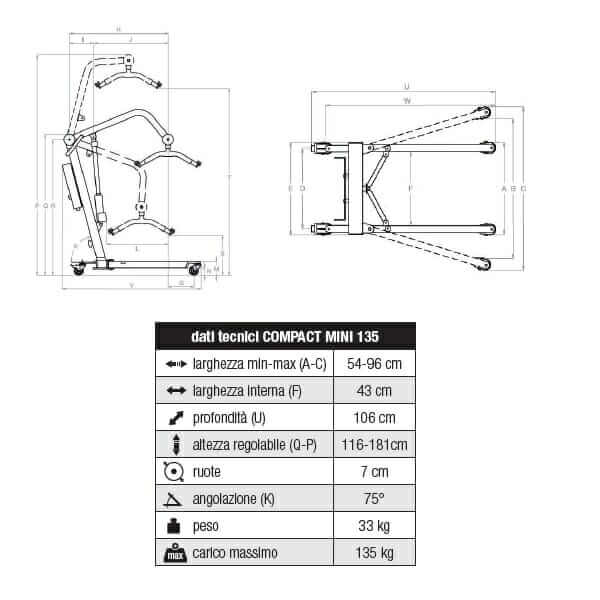 COMPACT MINI 135 è dotato delle seguenti caratteristiche tecniche: