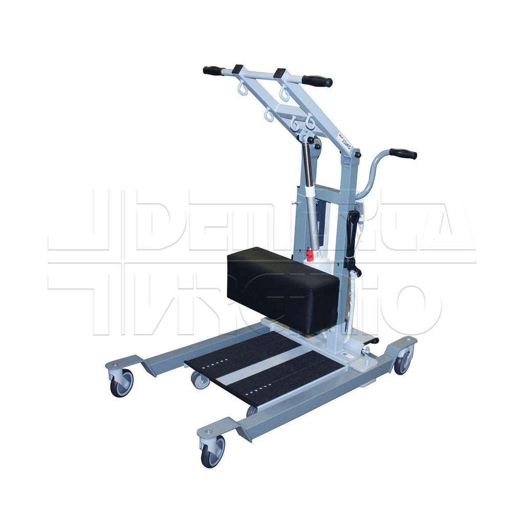 Il sollevatore elettrico attivo VERTIC 2 FORTISSIMO aiuta i pazienti parzialmente collaboranti ad alzarsi in piedi. E' dotato di una centralina LINAK (asportabile su richiesta) collocata sulla colonna portante, telecomando con cavo elettrico, una pedana antiscivolo, una protezione per le ginocchia regolabile ed imbottita, bilancino a 5 punti di aggancio, maniglione per facilitare lo spostamento, 2 maniglie per aiutare il paziente ad alzarsi, base con 6 ruote pivottanti di cui 2 con freni d'arresto, un pulsante di emergenza FUNGO ROSSO che blocca il flusso di elettricità, un sistema meccanico di discesa di emergenza in caso di mancata elettricità e un ulteriore sistema elettronico di discesa di emergenza in caso di malfunzionamento del telecomando.