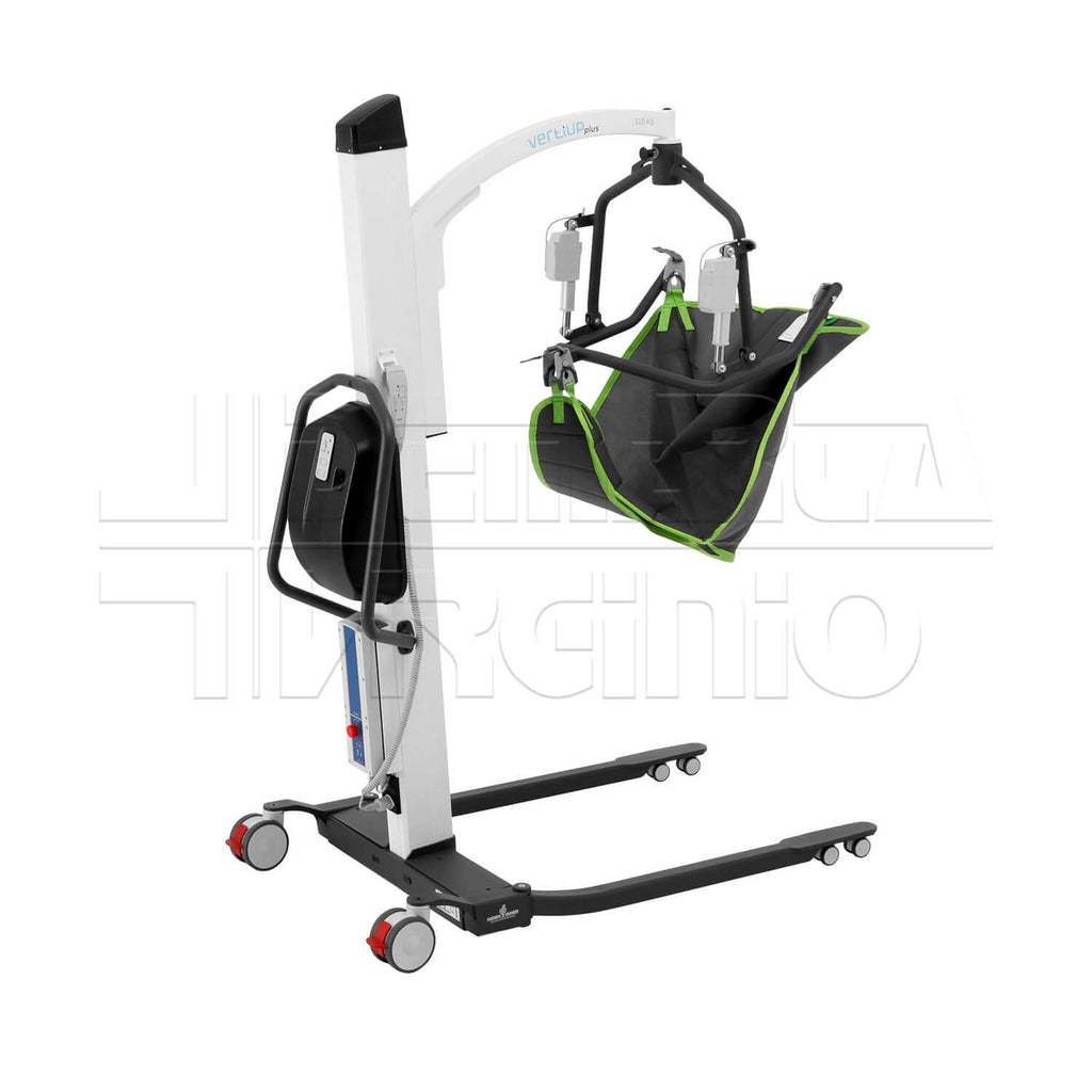 • Base a 6 ruote pivottanti e gemellate di cui 2 posteriori aventi freno d'arresto.