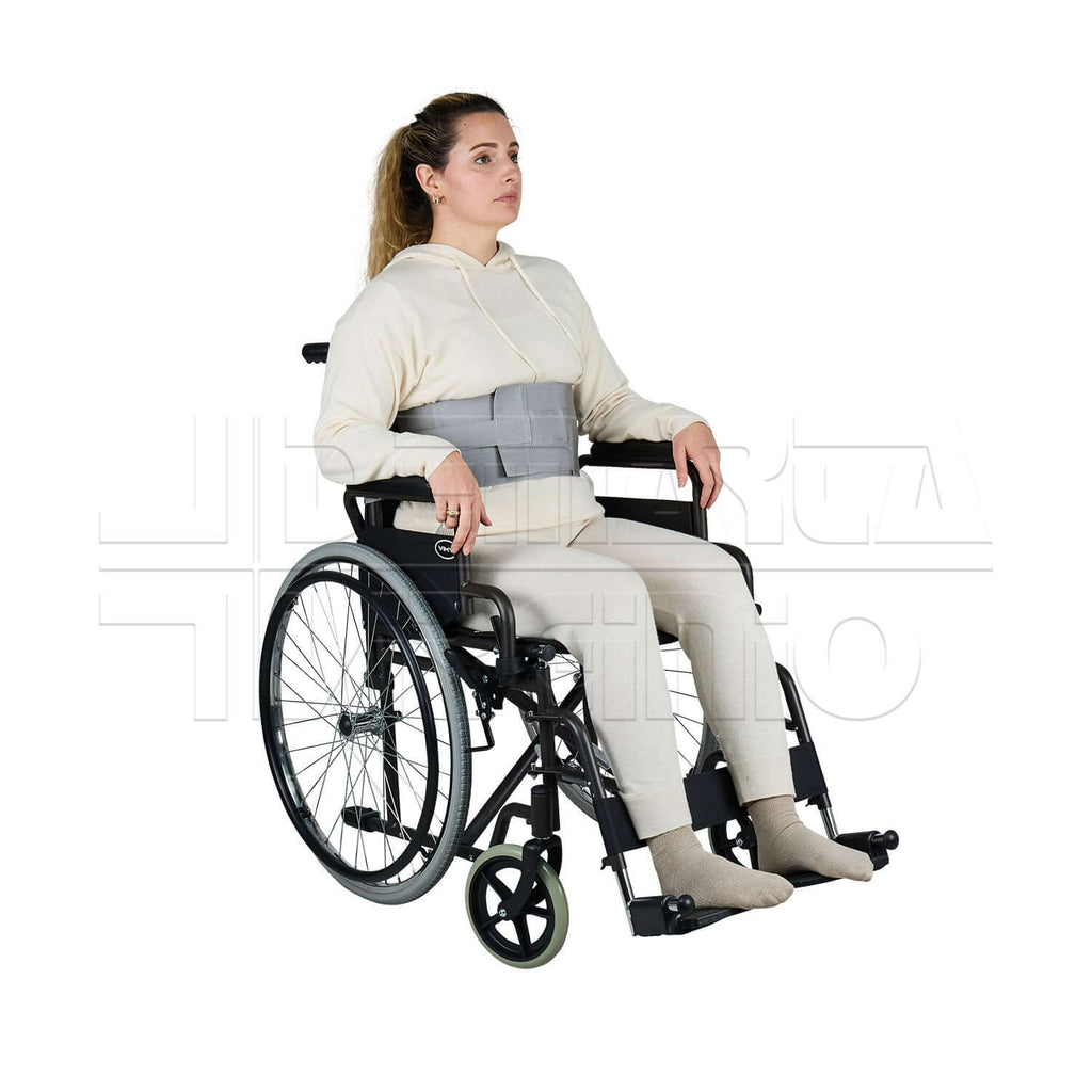 La CINTURA DI FISSAGGIO con Fibbie in Plastica offre un comodo aggancio del paziente alla carrozzina evitando possibili cadute e scivolamenti.
