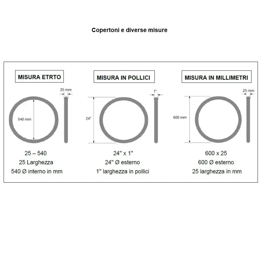 Copertoni e diverse misure