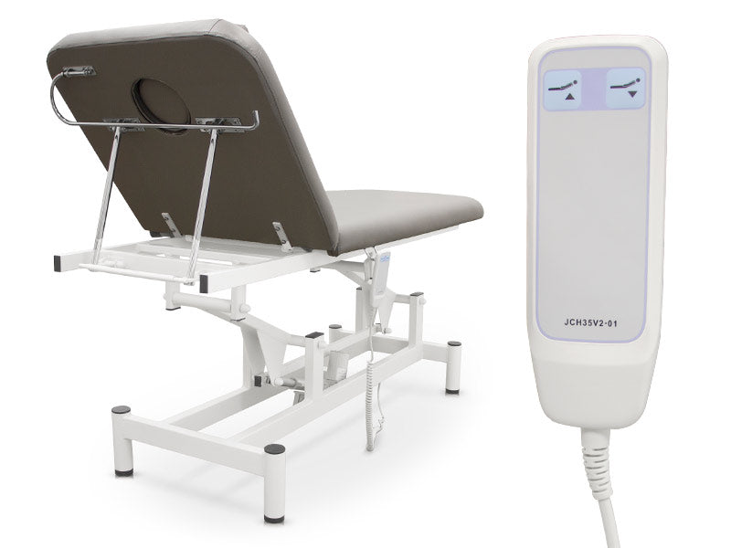 Spettacolare lettino elettrico a 2 sezioni con finiture sensazionali, struttura solida, altamente resistente e rivestimento di alta qualità disponibile in vari colori. Un prodotto completo e altamente versatile.