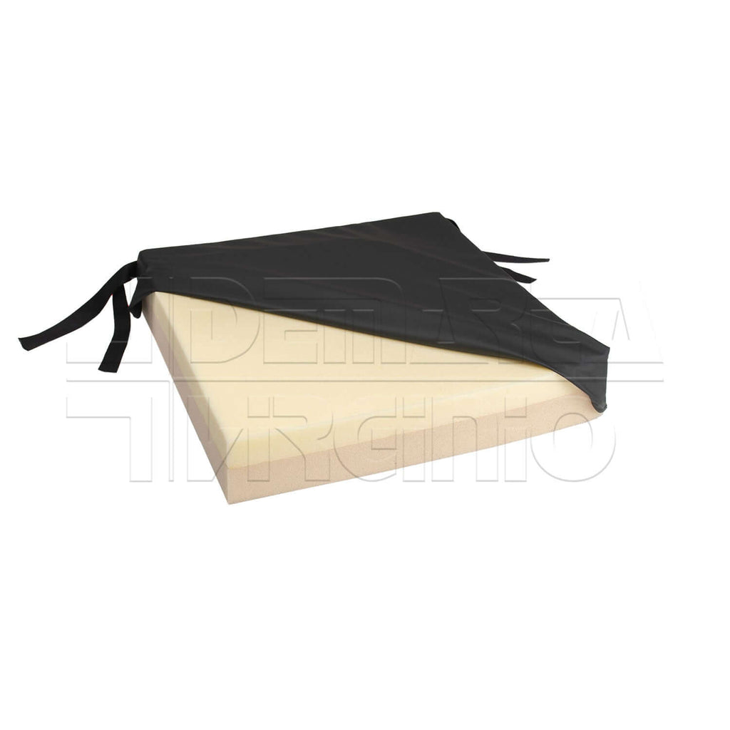 Il cuscino TEMPERFOAM è composto da una base in espanso con densità di 30 Kg/m3 e da una superficie in espanso viscoelastico con densità di 60 Kg/m3. La fodera esterna è impermeabile e traspirante con una base antiscivolo e cerniera su 3 lati; i laccetti alle estremità permettono l'aggancio alla carrozzina.